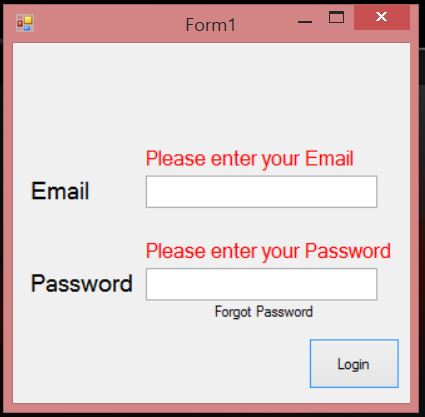 if the user doesn’t input any word in the email and password textbox, text appear above a textboxes asking for your email and password