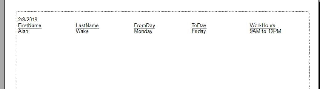 when the manager goes to print the schedule the employee name, the days and hours they work for will be displayed