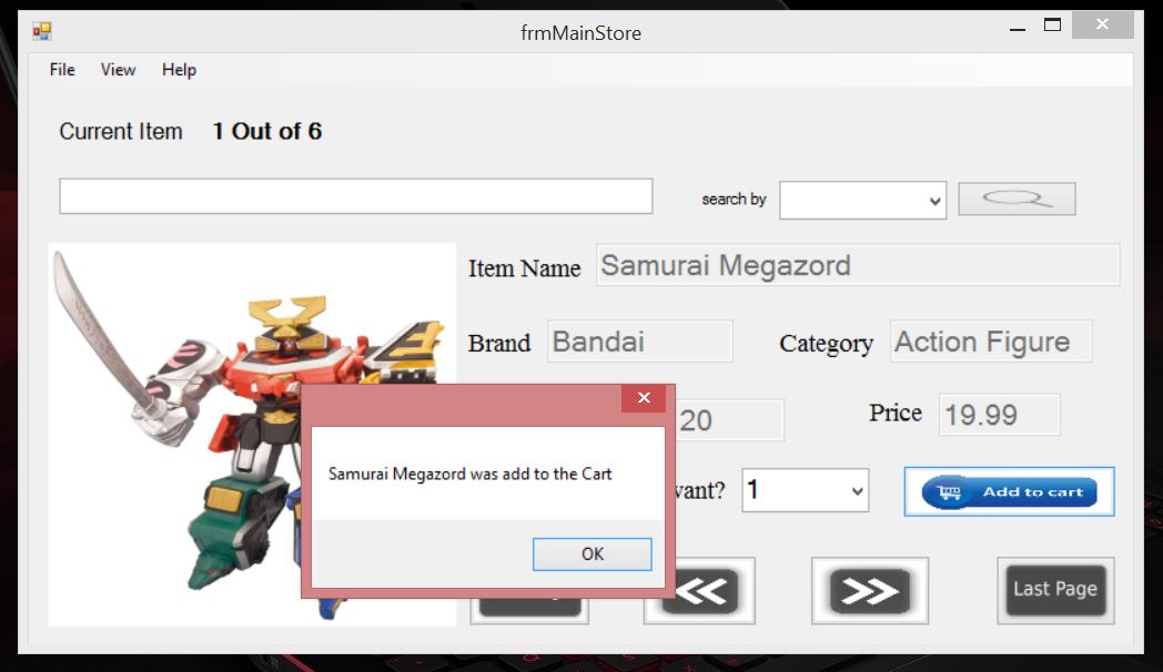 Here we see the Product name and their quantity and as we can see we are almost of product #6 the “Thunder Megazord” and we need to acquire some more