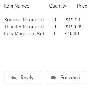 let say these are the item the customer want to purchase if the user check checkout these will be put into an order detail to the customer email